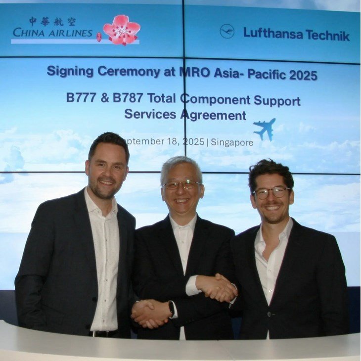 China Airlines (CAL) and Lufthansa Technik have once again expanded their close cooperation in the field of maintenance, repair and overhaul (MRO), this time with a particularly long-term focus. At the MRO Asia-Pacific trade fair in Singapore, the two companies today signed a new contract that will secure the parts supply for China Airlines’ existing Boeing 777 and future Boeing 787 fleets over no less than the next two decades. With its comprehensive Total Component Support (TCS) for the 787, Lufthansa Technik will also become an important partner for the airline in its fleet expansion.